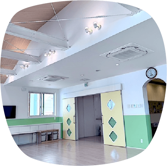 自由な選択遊びの時間16:00 帰りのお集まり 16:30 順次降園(お見送り) 17:00 延長保育のご利用開始 18:30 閉園の時刻